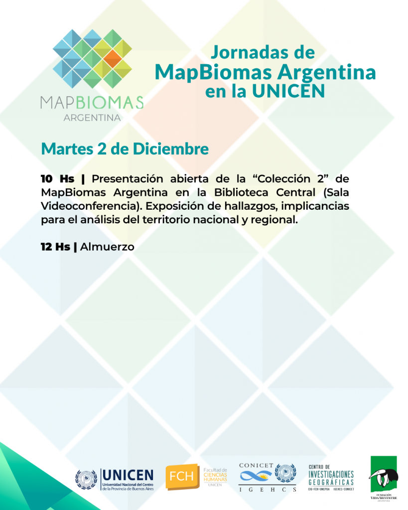 Jornadas de MapBiomas Argentina en la UNICEN, a realizarse los días 1 y